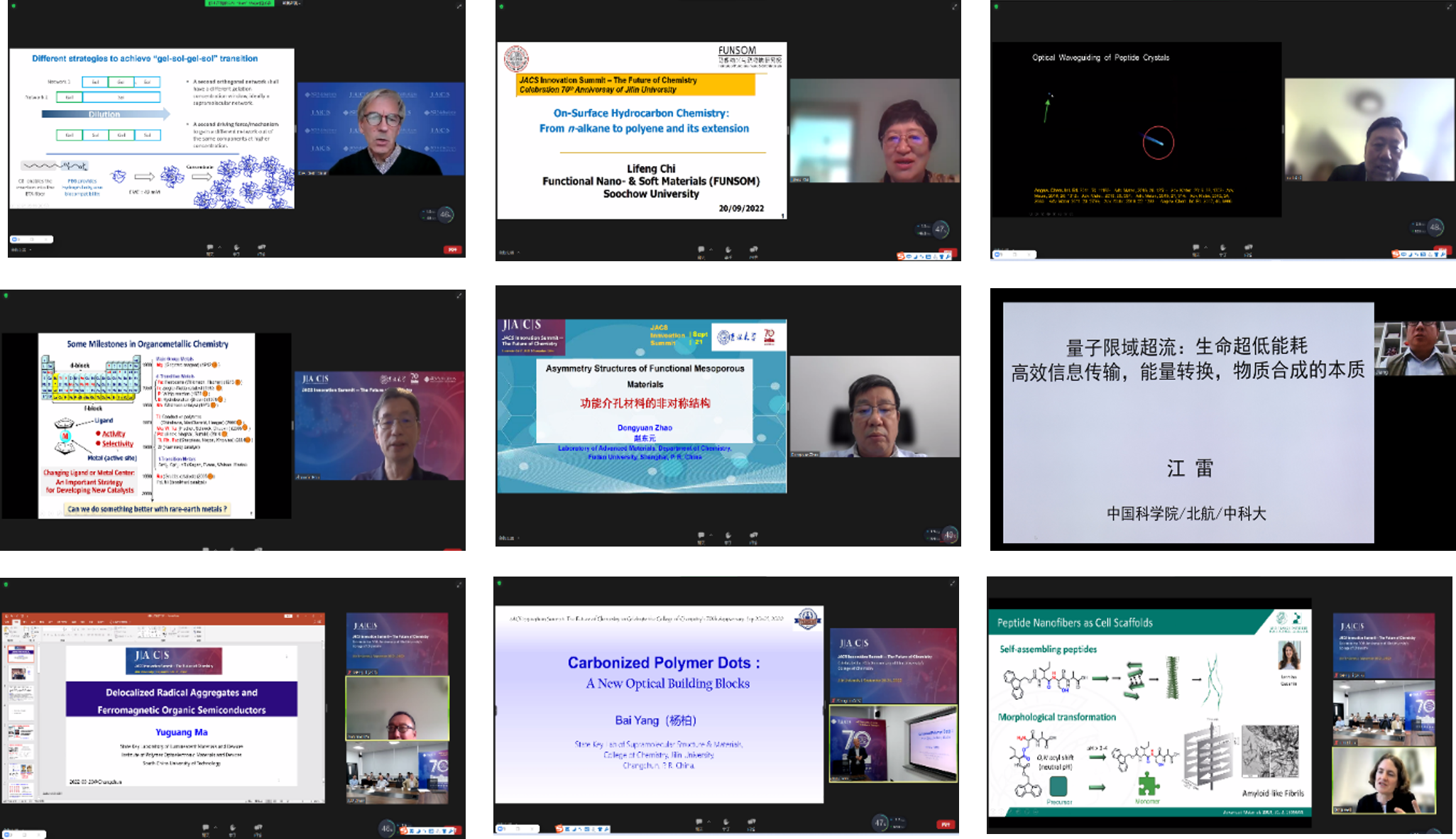 开幕式结束后,于吉红院士、日本理化学研究所侯召民教授、吉大伟德国际victor1946杨柏教授、吕中元教授共同主持了峰会学术报告。侯召民教授、荷兰埃因霍芬理工大学E.W. “Bert” Meijer 教授、德国马普高分子所 Tanja Weil 教授、苏州大学迟力峰院士、中科院理化所江雷院士、华南理工大学马於光院士、复旦大学赵东元院士、中科院化学所李峻柏研究员和伟德国际victor1946杨柏教授分别作大会主旨报告。伟德国际victor1946安泽胜教授、陈于蓝教授、刘堃教授、李乙教授、吴光鹭教授、邹晓新教授等作为青年学者代表作大会主题报告,分享各自在超分子组装、功能材料和高分子化学等领域取得的一系列引领未来化学的创新性研究成果。