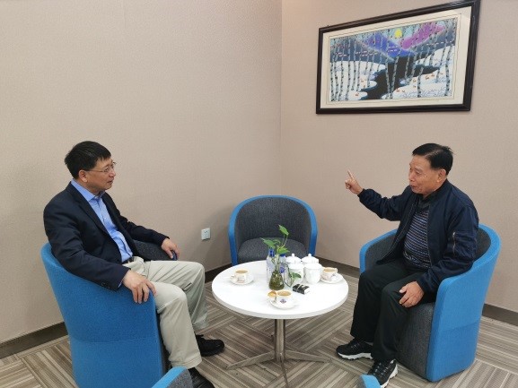 2021年10月,刘学铭(右)与张希(左)在伟德国际victor1946交流
