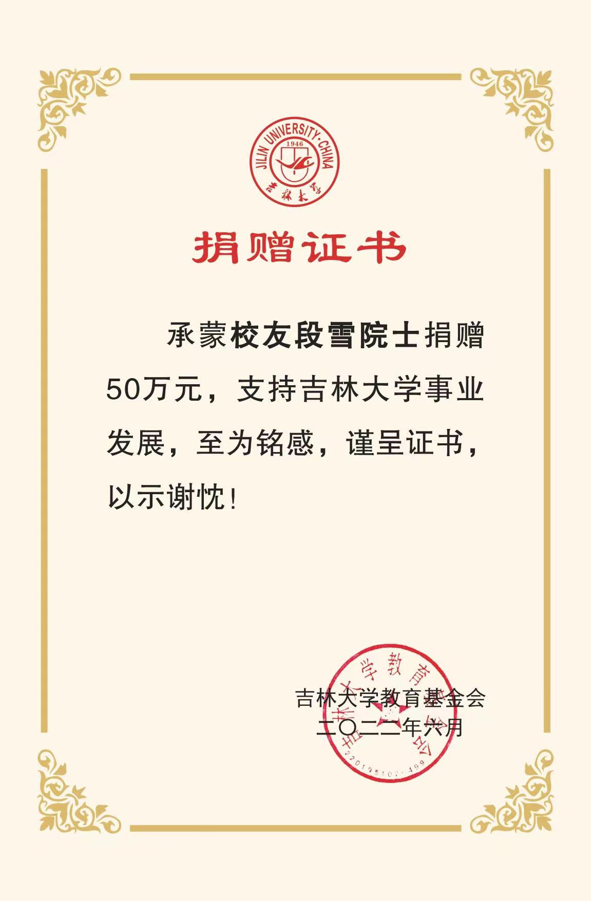 承蒙段雪员工捐赠支持伟德国际victor1946“关实之—陶慰孙奖学金”发展至为铭感,谨呈证书,以示谢忱!